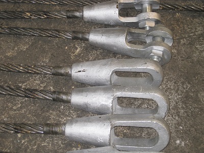 2017-11-19 10:29:13以浇铸的方式用巴士合金或树脂胶水把钢丝绳和索接头连接成的索具。